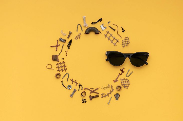 Karun diseña marcos de anteojos con Celion, un material hecho con el acetato de las colillas de cigarrillo recuperado por la empresa chilena IMEKO. Las colillas de cigarrillo son un residuo tóxico, abundante y complejo de reciclar
