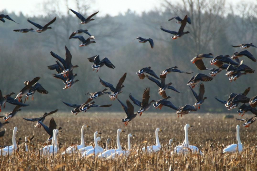 Los humedales españoles como Urdaibai (País Vasco), las Laguna de la Nava (Palencia), del Oso (Ávila) y de Gallocanta (Zaragoza) o el parque nacional de Doñana (Huelva), constituyen auténticas estaciones de servicio para las bandadas migratorias que sobrevuelan la Península Ibérica hacia lugares más cálidos del planeta durante los meses de invierno.