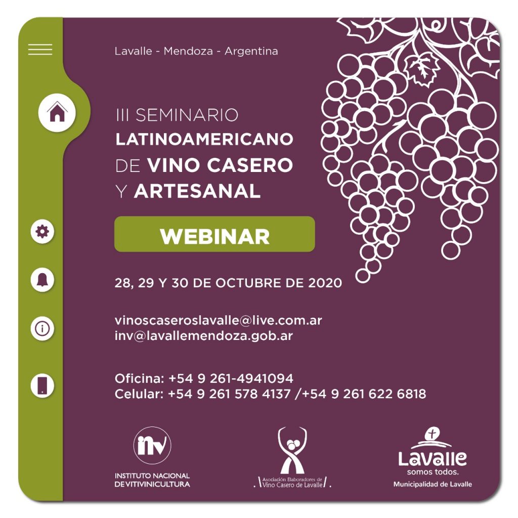 El III Seminario Latinoamericano, organizado por la Municipalidad y la Asociación de Elaboradores de Vino Casero y Artesanal de Lavalle, con el apoyo del Instituto Nacional de Vitivinicultura, este año se trasladará al plano virtual y contará con un atractivo panel de disertantes. Profesionales del INV, INTA, SENASA, IDR, Facultad de Ciencias Agrarias, experiencias de México, Chile, Bolivia, Perú y exposiciones de Francia e Italia serán parte de esta nueva edición que se llevará a cabo los días 28, 29 y 30 de octubre, mientras que el 2° Concurso Latinoamericano de vinos caseros y artesanales se llevará a cabo en noviembre con la presentación de muestras en el I.N.V. como lo estipula el reglamento correspondiente.