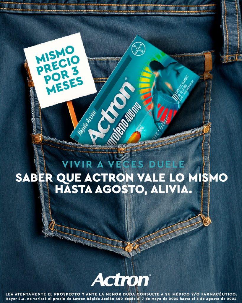 “En Bayer creemos que tenemos la responsabilidad de ofrecer soluciones confiables y de calidad para las necesidades de los consumidores; y para ello abordamos el autocuidado como un proceso, que comienza por entender lo que nos pasa, comprender el dolor, para luego buscar herramientas que nos permitan estar mejor. También creemos que las marcas deben ser empáticas y acercarse a los consumidores. Por eso llevamos adelante una campaña a través de la cual los consumidores podrán acceder a un producto de alta calidad como es Actron, al mismo precio durante tres meses. Así acompañamos, en un contexto particular de nuestro país, los hábitos de autocuidado”, sostuvo Lorena Romero, Group Brand Manager de Pain, Cardio & CSCF de Bayer Cono Sur.
