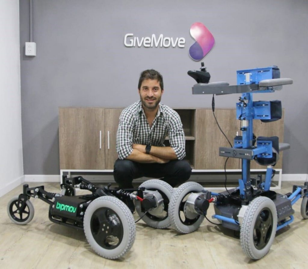 -GiveMove es una empresa que en Entre Ríos crea tecnología que permite brindar autonomía e independencia a personas con discapacidad motriz. Haciendo más que nada foco en soluciones pediátricas, pero también en adolescentes y adultos. ¿Por qué pediátrica? Porque GiveMove nace para dar soluciones a una familia con un niño con atrofia espinal muscular que necesitaba pararse todos los días, en lo que se llama bipedestador. El problema era que los bipedestadores que existían eran todos estáticos. ¿Qué quiere decir esto? Es un dispositivo con sujeciones en los tobillos, rodillas, cadera y pecho, lo cual permite asegurar una correcta alineación de la persona y pararlo. El problema era que este niño quedaba sujeto en un rincón de la casa, una hora todos los días, sin poder moverse y eso lo angustiaba mucho, además de generar un stress a la familia que lo veía llorando, y no podía hacerle entender que era por su propio bien.