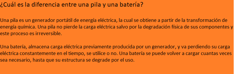 Cuando hablamos de pilas nos referimos a todos aquellos dispositivos que incluyen un sistema electroquímico con capacidad de suministrar energía eléctrica en forma independiente, es decir, sin conexión a la red eléctrica, tales como: