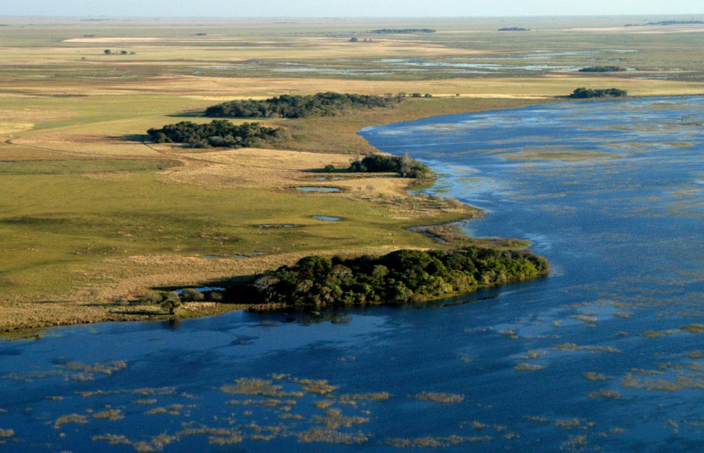Humedal con esteros, cañadas, bañados, lagunas y grandes espejos de agua, intercalado por pastizales en lomadas arenosas, y salpicado por pequeños bosques húmedos, selvas en galería y bosques secos sobre los albardones del sudeste.