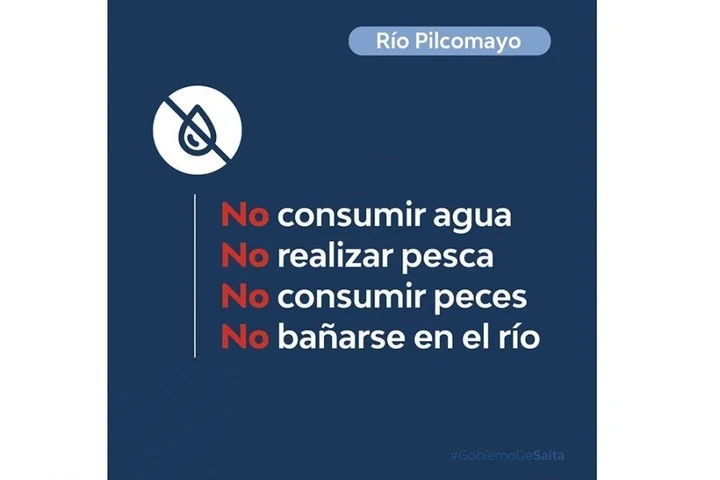 El Gobierno de Salta, en adhesión a la Secretaría de Articulación Federal de Seguridad de la Nación, recomendó este domingo, de manera preventiva, no consumir agua, pescar, consumir peces ni bañarse en el río Pilcomayo.