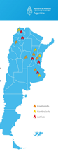 | Buenos Aires | Zárate (Atucha, Talavera Irigoyen, Casita nueva, Arauco, Arroyo Ciego, Predio Milagros y Codo Talavera) Baradero (Baradero, Gaucho Viejo y Florcita Arroyo Los Laureles) Zárate (Intencional) Gral. Las Heras (Bautismo) Campana (Otamendi) Campana (Las Tejas) Campana (PN Ciervo de los Pantanos -Canal Santa) | Activo Activo Extinguido Contenido Contenido Activo Controlado |