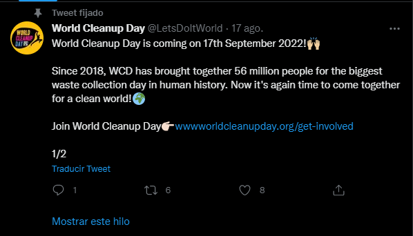 El día mundial de la limpieza es gestionado y promovido por la organización World Cleanup Day, tiene sus propias redes sociales y una página web. Se informan los eventos que están confirmados y distintas acciones que se realizarán en todo el mundo. En su último tweet comenta: » El dia mundial de la limpieza es el 17 de Septiembre en 2022!. Desde 2018, el día mudial de la limpieza ha unido a 56 millones de personas para la más grande recolección de residuos en la historia de la humanidad. Ahora es momento de juntarnos para un mundo limpio!».